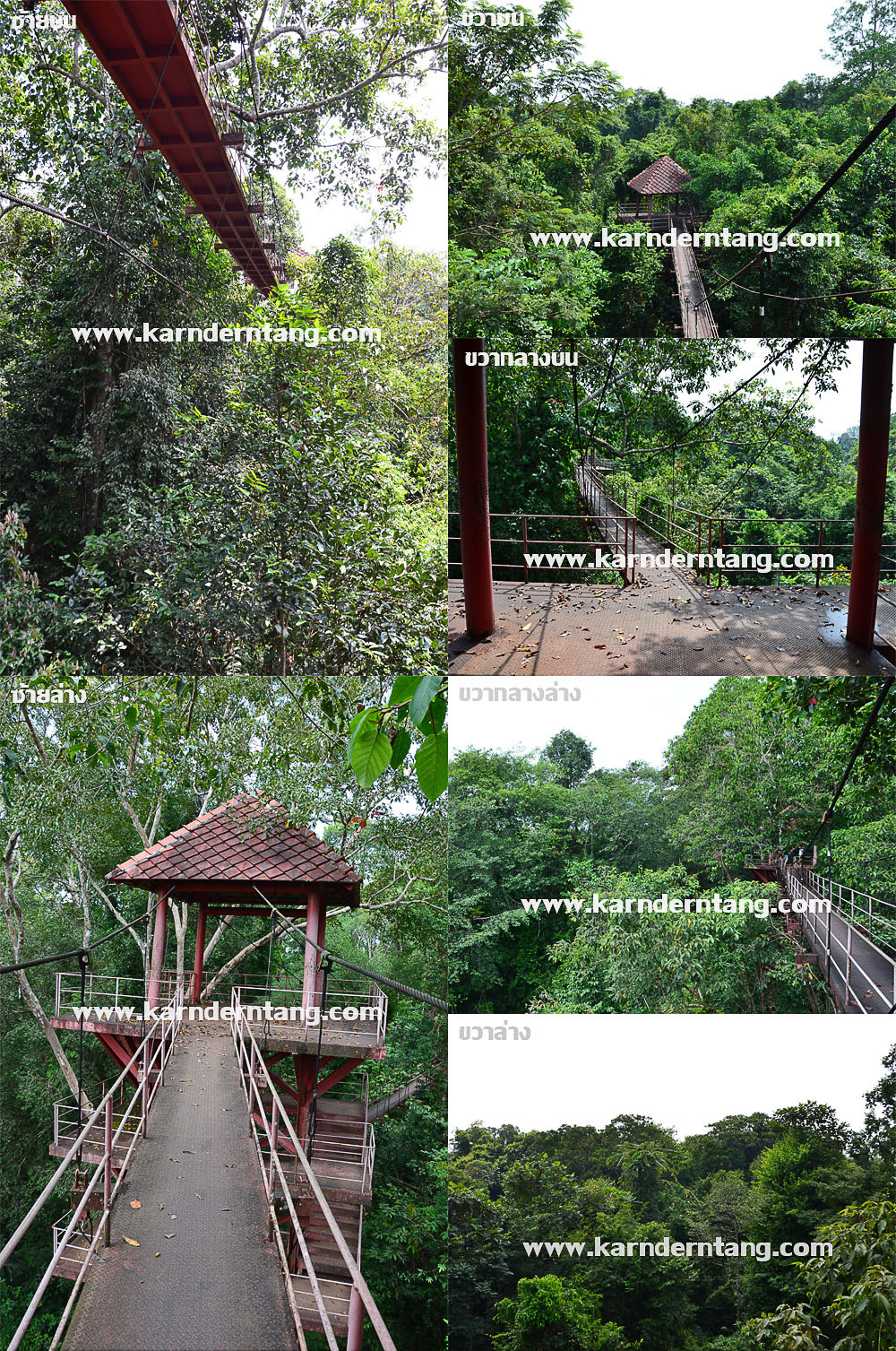 ขวาล่าง – และถ้ายืนอยู่กลางสะพานชมวิว เราจะเห็นทิวทัศน์เรือนยอดไม้ที่ระดับความสูง 18 เมตรแบบนี้ (ต้นไม้ในป่าช่างสูงเสียจริง)
